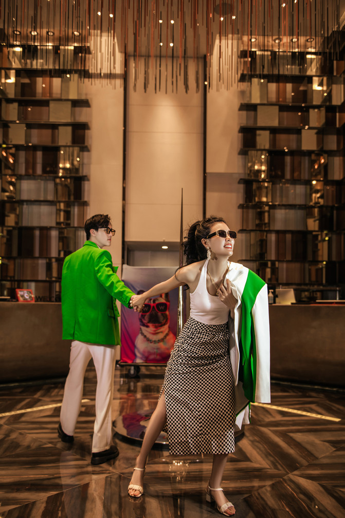 Llegé en el día de puertas abiertas de la suite presidencial en el piso superior 30 del hotel, el tema de esta vez fue la variación de color, así que pedí a un amigo que me pusiera la ropa más nítida para disparar y disparar nuestro círculo de amigos!