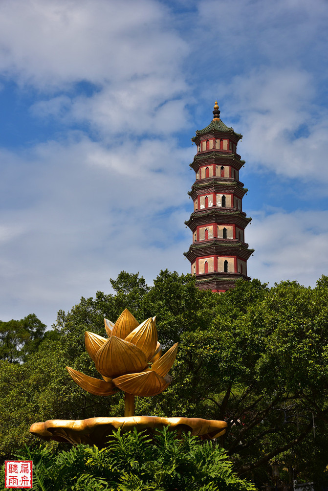 Fuera de la ciudad de Guangzhou, 30 kilómetros al sur, en la orilla oeste del Océano Lion en la entrada del río Perla en la ciudad de Shilou, distrito de Panyu, hay una montaña de loto de 108 metros sobre el nivel del mar, y una torre de loto de 50 metros de altura se erige en la montaña. La Torre del Loto fue construida en el Cuarenta Año de Wanli (1612), y tiene una historia de casi 400 años. Mirando a lo lejos, la Torre del Loto es como la altura dominante de la desembocadura del río Perla.
