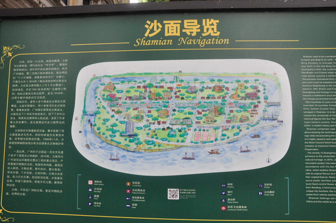 En los últimos 100 años, más de 10 países han establecido consulados en Sha-Meng, nueve bancos extranjeros y más de 40 bancos extranjeros operan en Sha-Meng, y el Guangdong Customs Club y el Guangzhou Club se han establecido sucesivamente en Sha-Meng. La isla ha sido testigo de los cambios de la historia moderna de Guangzhou, dejando huellas de grandes hombres como el Sr. Sun Yat-sen y el Primer Ministro Zhou Enlai.La isla se ha convertido en el epítome de la historia moderna y la historia de la concesión de China.La arquitectura continental en la isla ha formado un edificio único al aire libre "museo". Ha sido desarrollado como un lugar escénico nacional AAAAA, es un famoso lugar turístico, un lugar escénico y un centro de ocio de Guangzhou.
