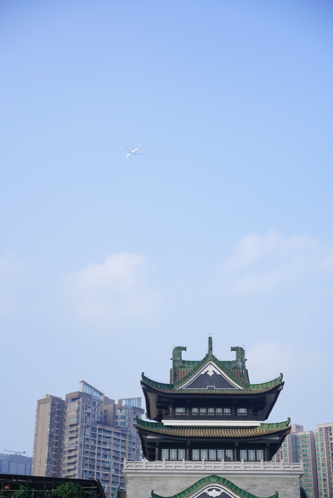 La oficina de correos sube las escaleras durante los años, el avión navega por la ciudad vieja, y el Museo de Ópera Cantonesa está ubicado frente a él.