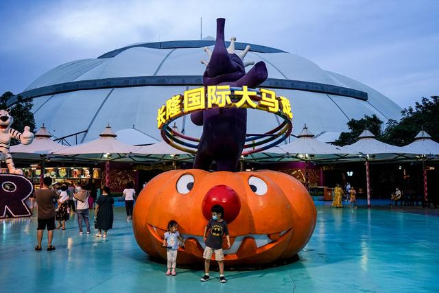 Fuera del parque, llegamos al estacionamiento del circo. Vamos a tomar un transbordador aquí para ir a la estación de tierra y volver a casa. ¡Vamos al circo internacional de Changlong la próxima vez!