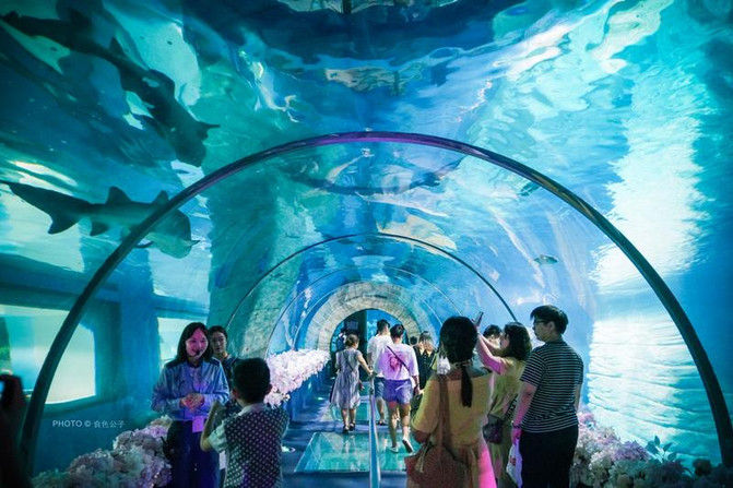 Caminando por un túnel submarino de 360 grados, una multitud de peces de todos los tipos y tamaños nadan por encima de su cabeza, como si estuviera a su alcance, como caminar por el fondo del océano. Sienta la magia de la luz y la sombra rodeada por 360 grados de peces, disfrute de la belleza de las profundidades del océano y experimente el sueño de las profundidades del océano.