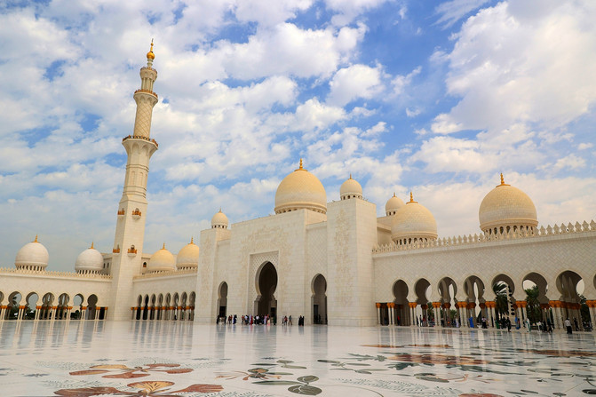 Según los informes, la mezquita Sheikh Zayed es la mezquita más grande en el Medio Oriente, con un costo de 5.500 millones de dólares. El interior está incrustado con decenas de miles de conchas de piedras preciosas. El valor único de apreciación es cada lámpara de cristal SLOWARSCHI de 800.000 dólares y la alfombra hecha a mano más grande del mundo. Todo el complejo está envuelto en jade blanco de Han de Grecia, y la apariencia blanca y elegante, en contraste con el cielo azul, parece particularmente solemne.