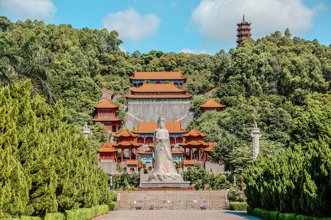 Cuando se trata del Palacio Nansha, nadie lo sabe, nadie lo sabe, es el templo de Mazu más grande del sudeste asiático. El Palacio de Nansha Tianhou se construyó con referencia al Templo de Mazu en Meizhou, Putian, Fujian, y cubre un área de 100 hectáreas. Su arquitectura general es el estilo de palacio de la dinastía Qing, solemne y solemne, con el aire de la corte. Todo el Palacio de Tianhou está rodeado de árboles verdes, y estar en el medio hace que se sienta de repente fuera de la tierra.