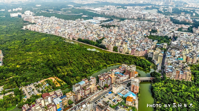 Fotografías aéreas, el antiguo puerto de Huangpu ahora se encuentra en el norte de Xingang East Road, a través de Huangpu Chung y Luntou al sur, a través de la autopista Donghuan al oeste, y a través del río Perla y Changzhou y Shenjing al este.