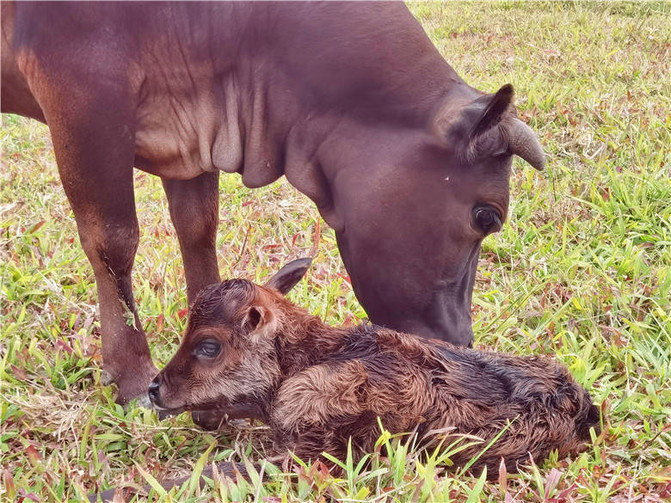 En este momento, la camisa fetal de la vaca se ha desprendido lentamente. Solo vio a la vaca mirando hacia atrás con fuerza para morder y sacar la camisa del feto, y luego se dirigió al frente. En este momento, el criador se sorprendió al descubrir que la camisa fetal se convirtió en una comida nutritiva frente a las vacas que habían estado comiendo pasto, las vacas se tragaron, masticaron con fuerza y se tragaron lentamente.