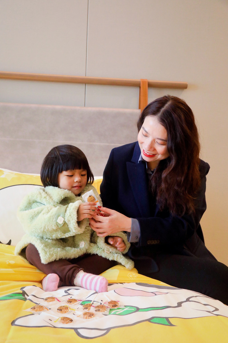 Las sábanas amarillas tiernas atrajeron a los niños a primera vista; el lindo BOOMi también se convirtió en un buen amigo para mis dos hijas por "competir". Mi hija siempre se molesta, ¿cuándo puedo llevar a casa a BOOMi? Esperamos que Holiday Inn haga algunos derivados de dibujos animados IP en el futuro para satisfacer el amor de los niños por BOOMi.