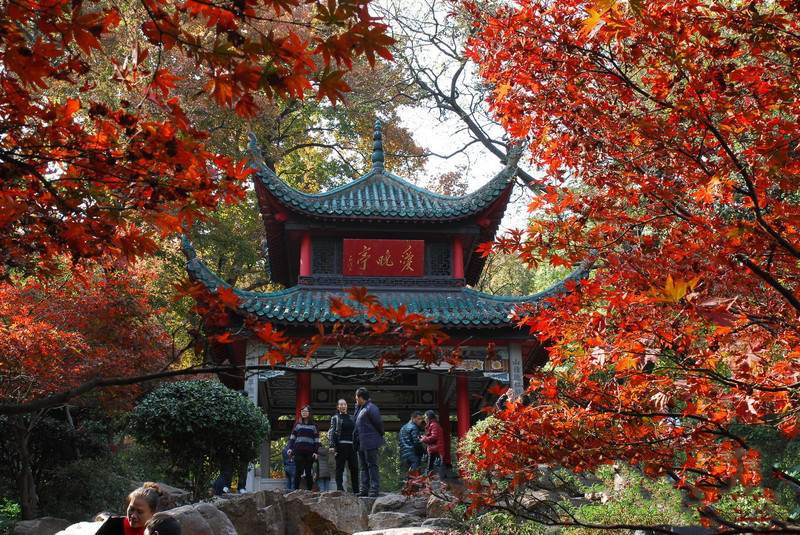 El pabellón de la noche del amor: Originalmente conocido como el pabellón de las hojas rojas, fue construido en el período Qing Qianlong, uno de los cuatro pabellones famosos de China, más tarde tomado del poema de Du Mu "Parar para sentarse en el bosque de arce por la noche, helada hoja roja en la flor de febrero".