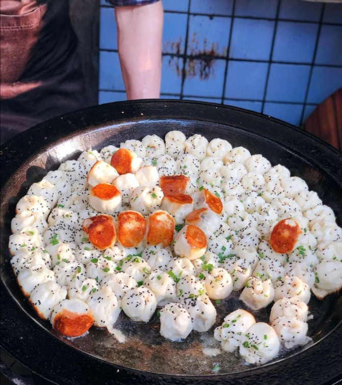 Esta fritura cruda en la puerta sur es una pequeña tienda junto al mercado de verduras, pero el negocio es muy bueno. El propietario vio a alguien en la cola cuando lo estaba haciendo. Una olla se puede vender rápidamente. 5 yuanes por una, hay ocho en ella, todavía es bastante rentable. La superficie cruda frita es crujiente, el relleno es abundante y muy fragante.