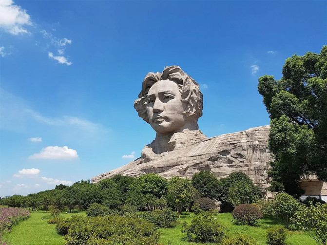 Naranja Zhou, ubicado en el centro del río Xiangjiang en el distrito de Yuefu, es el banco de arena más grande de los muchos bancos de arena aluvial en el río Xiangjiang inferior, y también el continente interior más grande del mundo, aclamado como "el primer continente de China", por no mencionar que aquí se encuentra la estatua del presidente más grande de China, de 32 metros de altura y 84 metros de ancho de hombro.