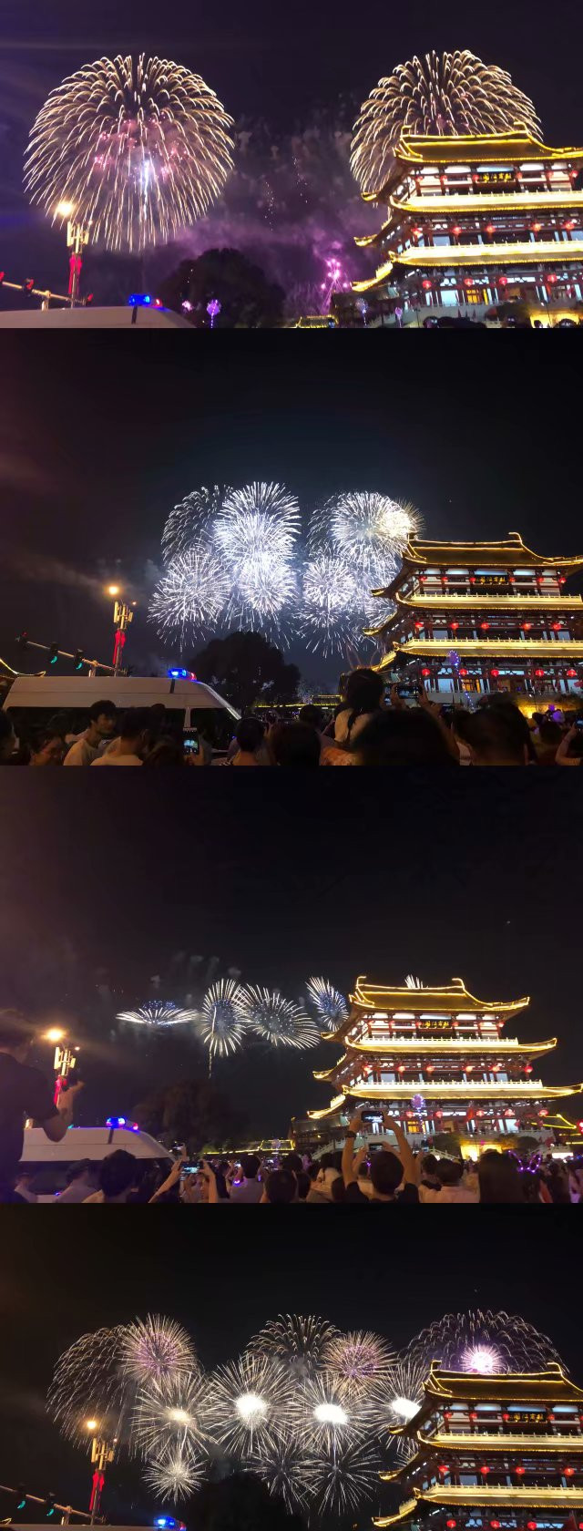 Fueron de compras por la tarde, centrándose en los fuegos artificiales de Orange State por la noche, que se mostraron de 7: 30 a 7: 50 p.m. Llegamos una hora antes, el río ya estaba lleno de gente, pero todavía nos paramos en la primera fila frente a la carretera Dufu Jiangge. La hija dijo que esta es la tercera vez que ve fuegos artificiales en Changsha, y esta vez es la mejor vista y la mejor ubicación. Más tarde vi las fotos en línea, excepto que los fuegos artificiales de baja altura no están completos y el reflejo del río no se puede ver. Fuegos artificiales espléndidos, mareas agitadas, la multitud de vez en cuando se escucha un ráfaga de exclamaciones. De repente me acordé de un pasaje que había visto en algún lugar y en algún momento, "como fuegos artificiales que florecen en la noche, cálidos y poderosos ", que el autor usaba como una metáfora para lo que había sido olvidado, pero que se recitaba en el corazón y a veces se recuerdaba sin razón.