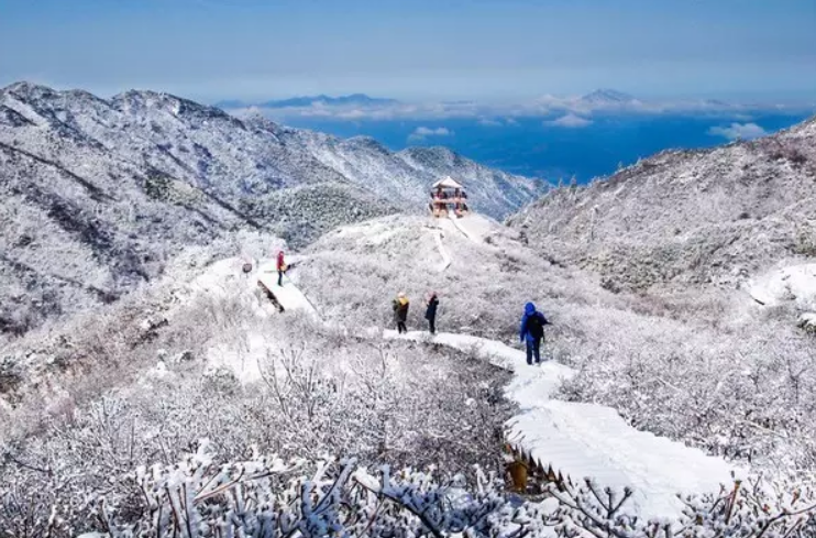 La montaña Nanyue Heng en invierno es un mundo de niebla de hielo transparente y nieve. Li Bai elogió la belleza del hielo y la nieve de la montaña Nanyue Heng con su pluma de "voltar y dispersar cinco picos de nieve, a menudo volando flores que caen en el patio de la cueva". El paisaje de nieve de Hengshan es hermoso y exquisito, tanto el sur como el norte áspero.