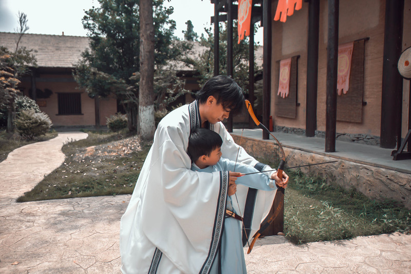Al entrar en el parque, nuestro padre e hijo se pusieron un traje chino y se prepararon para comenzar nuestro viaje a través.