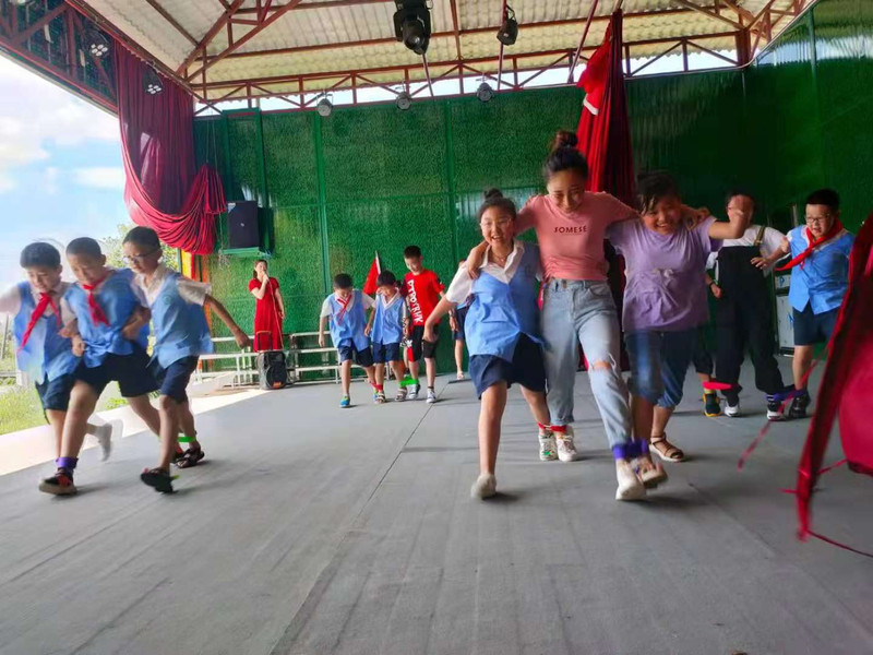 Corazón palpitante: Varias cuerdas rojas están atadas alrededor de la pared del tambor de un tambor. Cada miembro del equipo agarra el otro extremo de la cuerda roja y hace que la bola colocada en la superficie del tambor salte continuamente juntos. Los padres y los hijos cooperan entre sí para completar el proyecto.