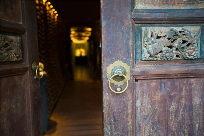En medio de la multitud ruidosa, empujamos suavemente la puerta llena de historias, esperando que el mayordomo abra la puerta, la vieja puerta se convirtió en un paisaje que teníamos que ver, la puerta aquí está hecha de madera de frijol rojo, sin reparar, todavía conserva su apariencia original. En el medio está la imagen de nuestro dios de la puerta tradicional china. El dios de la puerta a la izquierda sostiene peonías, y el dios de la puerta a la derecha sostiene un señor, lo que significa agregar funcionarios a un señor. Se dice que este diseño es también para desear a los huéspedes que se alojan en la casa de la gallina, que su carrera pueda prosperar y ascender gradualmente, lo que nos llevará de vuelta al estado de vida más natural.