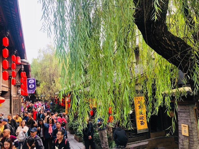Jinli Ancient Street está cerca del Templo Wuhou. No es ancho ni estrecho. En la superficie, parece que no es muy diferente de un callejón ordinario, pero cuando entré, descubrí que es muy diferente. Hay linternas rojas colgadas en la puerta, y no es una excepción. Todo el camino está lleno de linternas verticales largas, una cadena por cadena, como si hubiera una sensación visual de un antiguo mercado.