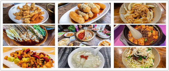 Hotpot de mantequilla, carne crujiente, azúcar marrón, polvo de hielo, polvo de frijol, fideos de agua dulce, fideos fríos, pastel de huevo, tres cañones, fruta de aceite de azúcar, tofu de Mabo, pollo de Gongbao, carne picada de sabor a pescado, tofu de frijol de