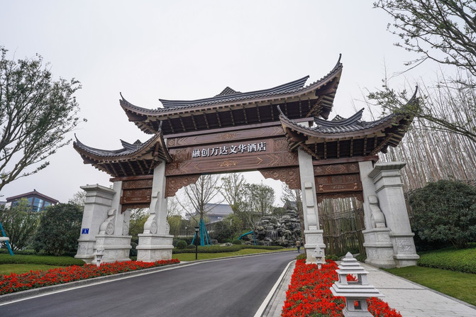 Chengdu Rongchuang Wanda Mandarin Hotel se encuentra en el centro de la ruta de anillo turístico del oeste de Sichuan, la ciudad de Dujiangyan, la "Ciudad de los Tres Patrimonios".