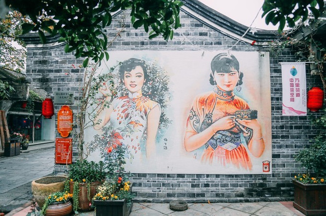 La belleza de Cheongsam, el periódico ilustrado publicado en el ladrillo azul, hace que las costumbres del pasado aparezcan más claramente frente a nuestros ojos. Entre las calles, el ruido de las herraduras de caballo de Dada parecía sonar claramente en el oído. Una variedad de tiendas exquisitas y compactas no se sienten en contra de ellas, tiendas de ropa, artesanos, cada uno está abierto adecuadamente, con un estilo de diseño atrae a la gente a entrar.