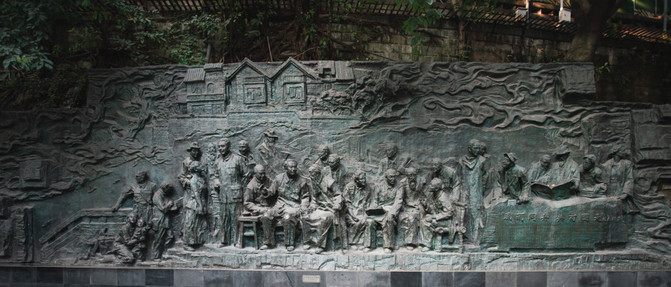 Monumento conmemorativo de la fundación de la Federación de Camaradas del Partido Comunista de los Tres Pueblos Nota: El 28 de octubre de 1945, la Federación de Camaradas del Partido Comunista de los Tres Pueblos se estableció en el Parque Especial del Templo Shangqing de Chongqing.