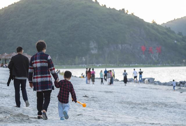 El agua del lago es clara y fresca, y los peces pequeños juegan en la orilla, lo que hace que los adultos y los niños se detengan, ¡pero debe prestar atención a la seguridad mientras disfruta de los peces jugando con el agua!