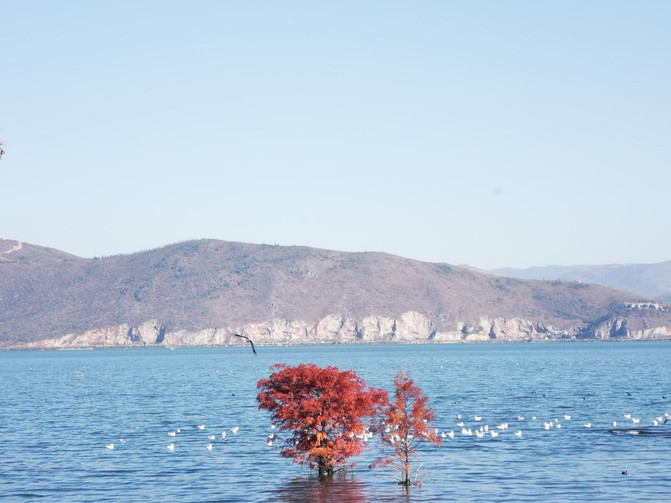 El itinerario del día siguiente se centró principalmente en la apreciación del hermoso paisaje. El mayordomo nos llevó al lago Erhai temprano en la mañana. Bajo el cielo azul, el agua clara, el mar con gaviotas voladoras. Por encima de la vasta superficie del mar en la distancia, hay nubes blancas en el cielo. El mar y el cielo son de un solo color, y el paisaje y el río se comunican, y en el lago Erhai se ha interpretado mejor. El viento sopla las puntas del cabello, de pie al sol tenemos una especie de tierna tranquilidad de la belleza de los años tranquilos.