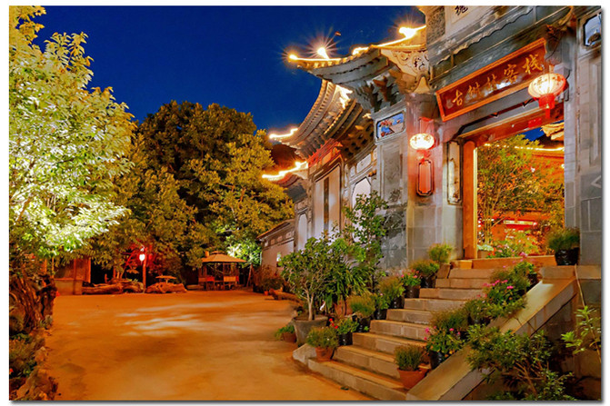 La tierra de rábanos está al sur de la montaña Lao Tai y la montaña Jizu sinuosa al norte. El paisaje natural del pueblo es hermoso, con diez mil árboles de nueces, castaños antiguos, montañas verdes como diáctea, árboles verdes entre caminos. Una tonelada de paredes blancas, azulejos azules, esquinas inclinadas y casas residenciales pintadas de la nacionalidad Bai parecen estrellas dispersas, que se extienden alrededor de la montaña. La antigua posada de ocio del bosque de árboles con arquitectura de estilo bai se esconde entre las montañas verdes y ríos.