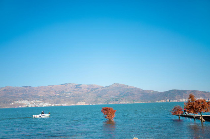 Después de jugar en Cangshan, no puede menos el lago Erhai. Bajo el liderazgo del mayordomo, llegué a un lugar con menos gente al lado del lago Erhai. Mirando la montaña Cangshan en la distancia, frente al lago Erhai, la brisa marina soplaba suavemente en el oído, y la brillante luz del sol en el mar es aún más brillante. Hay muchas gaviotas en el mar que vuelan libremente, flotando en el agua como una gema azul oscuro, ondulaciones, pájaros sonidos claros. Bajo este hermoso paisaje, le pedí al mayordomo que me ayudara a tomar algunas fotos y registrar este hermoso momento.