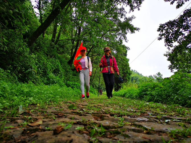 Caminando desde la puerta de Paifang a la puerta de la granja forestal Wulipo, la carretera es un pavimento de piedra de mármol y el ancho solo permite el paso de un solo vehículo, la elevación no es grande, la vegetación a lo largo del camino es muy densa, caminando en medio de la montaña, la vista no es demasiado abierta, ocasionalmente se puede ver la presa del condado de Weishan. Todo el camino caminando, hablando y sonriendo, llegó fácilmente a la puerta de la granja forestal, en este momento el registro de trayectoria es de solo 3 kilómetros.