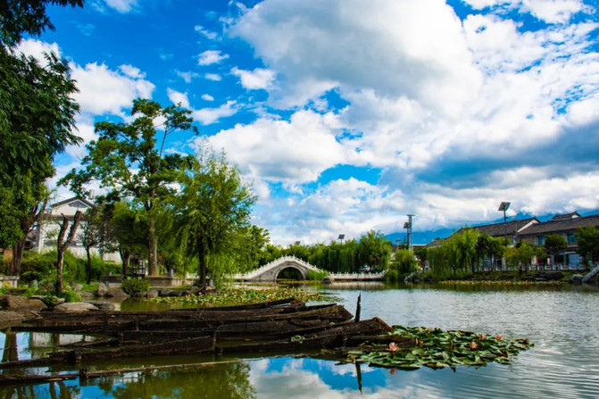 El agua del estanque, las azaleas, el lago Erhai y el cielo azul y las nubes blancas que se reflejan en el estanque de Xima constituyen el paisaje representativo más impactante del estanque de Xima.