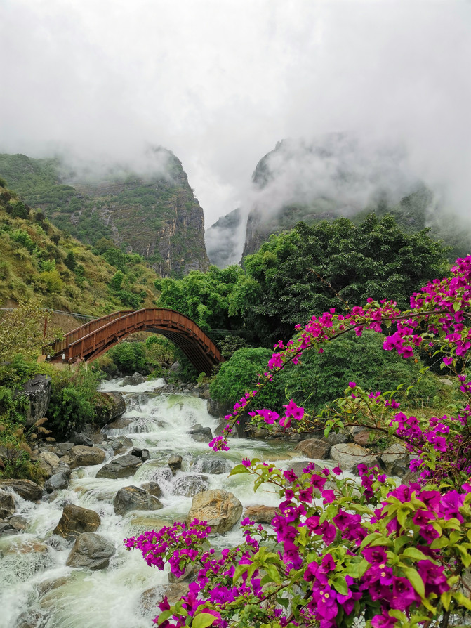 Bajo el puente del río Shimen y mirando a lo largo, el paso de Shimen en la lluvia y la niebla es como una ilusión de hadas, es fascinante, el paso de Shimen "Puerta de piedra cerrada por la niebla" está justo en frente de mí.