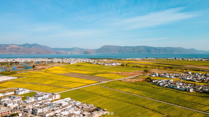 No es la primera vez que viene a Dali, la temporada más adecuada es la primavera, la temperatura está cerca de 20 grados, la diferencia de temperatura entre el día y la noche es relativamente grande, las flores de colza amarilla en florecimiento en marzo, los campos de trigo verdes, en la perspectiva de la fotografía aérea de capas claras, el verde amarillo y el mar lejano de Erhai se hacen eco entre sí, se han convertido en la mejor ciudad de primavera para muchos turistas perforar tarjetas.