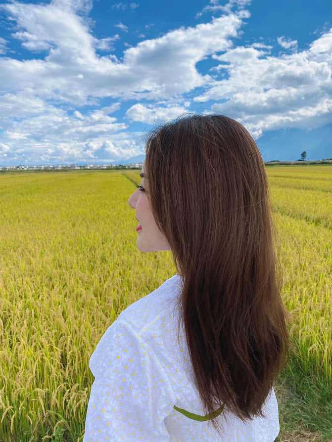 Es simplemente anime del mundo real, el cielo es azul claro y puro, el arroza amarillo dorado al sol, temblando con la brisa, corremos contra la brisa entre las zanjas del campo. El estado de ánimo se abre con la vista. (No necesitas dinero para tomar fotos y perforar tarjetas, oh, no te has disparado todavía)