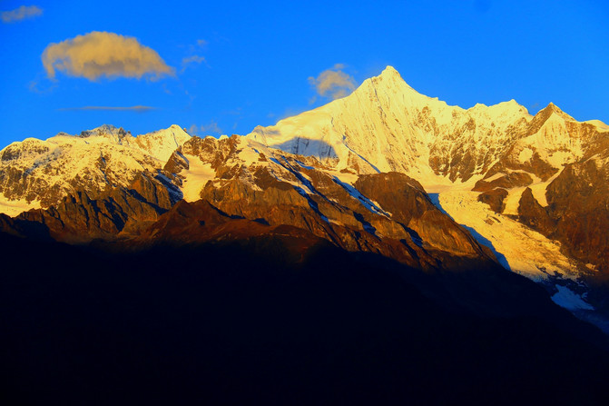 La montaña de nieve Meili pertenece a la cordillera de Hengduan, ubicada en la intersección del condado de Deqin de la prefectura de Diqing y el condado de Chaju del Tíbet, en el famoso río Jinsha, el río Lancang y el río Nujiang "tres ríos coexisten". La leyenda dice que hay 13 picos, llamados 13 picos del príncipe, el pico principal del pico Kawagbo, 6740 metros sobre el nivel del mar, es el pico más alto de Yunnan. La montaña de nieve Meili no es solo una montaña sagrada tibetana, sino también un lugar sagrado para el turismo. Conocido en todo el mundo por su majestuosidad y misterios.