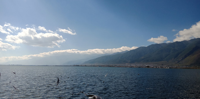 A las 13: 30, finalmente vi por primera vez innumerables veces que aparecieron en sueños, como un pecho ancho, paredes planas, de repente se elevaron, la montaña Cangshan, también vi el lago Erhai que se acurrucó en silencio, vivió juntos y vigilaba la vida.