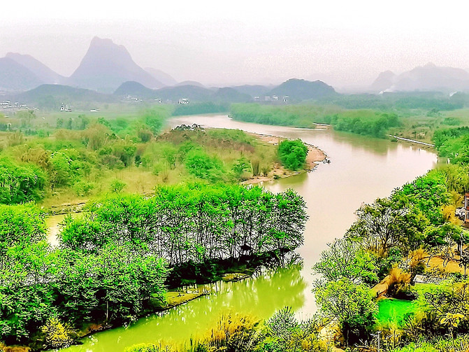 Los escalones no son empinados, y menos de 20 escalones, puedes mirar, y las montañas y ríos en la distancia están debajo de tus ojos. Ya ha pasado la temporada de flores de melocotón, no hay muchas personas que vienen, Panshan Road no está lleno en absoluto, puede tomar fotos a voluntad. Desafortunadamente, la razón de la lluvia en estos días, el agua del río no es muy clara, y el efecto de la foto no es muy bueno.