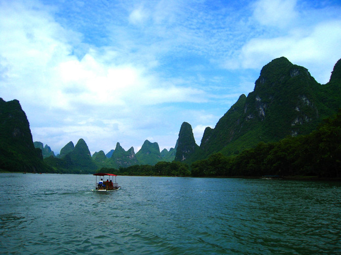 Los grandes picos en ambos lados del río Lijiang son la esencia del paisaje de Guilin. "Cien millas de Lijiang, galería de cientos de millas", cada paisaje es una típica pintura china a tinta. Guilin Lijiang Scenic Spot es un sitio del Patrimonio Natural de la Humanidad, un punto escénico nacional AAAAA, un punto escénico clave nacional, y es el área turística más grande y hermosa del mundo.