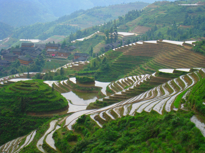 Los principales lugares escénicos que se han desarrollado en Longji Terrace incluyen Ping An Zhuang Terrace, Longji Guzhuangzhai Terrace y Jinkeng Hongyao Terrace, etc.