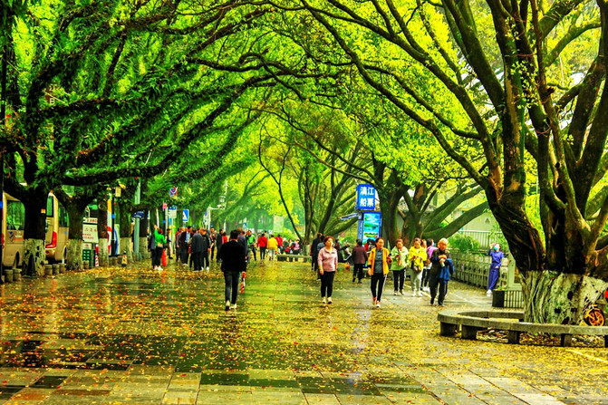 Un paseo por las calles de Guilin Zhengyang bajo la lluvia, tiene un sabor único.