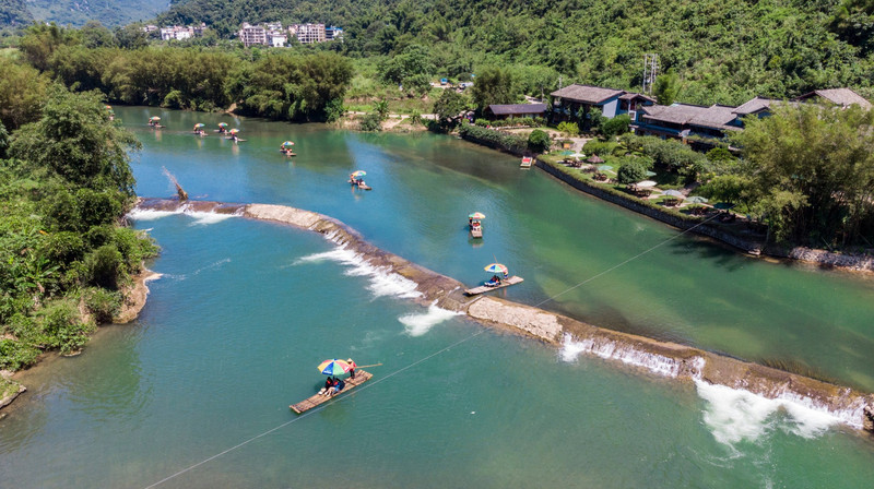 En particular, la Galería de Shili en Yangshuo es pintoresca todo el camino. Ya sea montar un coche de batería a lo largo del sendero o sentarse en una fila de bambú a la deriva para disfrutar del paisaje único a través del estrecho, es el mejor disfrute.