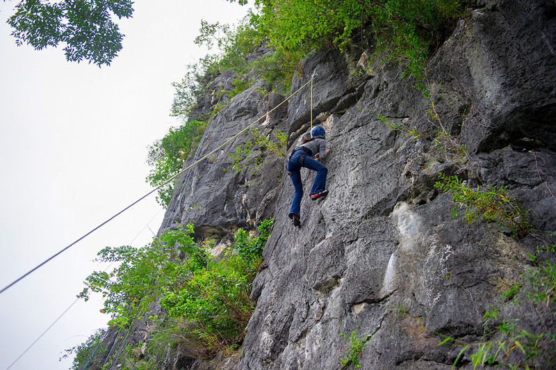 Escalada en roca al aire libre, es el programa de ocio más representativo del Club Med Guilin Resort, la colina de escalada en roca, en el complejo, bajo la guía y el aliento de un profesional G.O., todos pueden participar y desafiarse de manera segura.