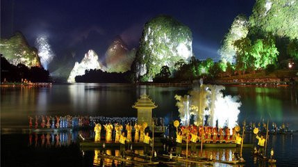 Como la recogida en Yangshuo es a las 17: 00 p.m., la actividad de la noche es la actuación de la impresión de la hermana mayor Liu Sanjie. Por la noche, el efecto de actuación de Liu Sanjie es diferente para cada persona. El famoso director Zhang Yimou planeó y dirigió una actuación en vivo de paisajes a gran escala. Con el tema general de "Impresión de Sanjie Liu", el espectáculo combina elementos innovadores como canciones clásicas de montaña, costumbres étnicas y fuego pesquero en el río Lijiang, que se disuelven en el paisaje y se reducen a la naturaleza, interpretando con éxito la armonía entre el hombre y la naturaleza, creando un reino de unidad entre el hombre y el mundo, que se conoce como "Obra maestra de cooperación con Dios". El espectáculo combina la singularidad, el arte, el choque, la nacionalidad y la visualización, que es una revolución del espectáculo y una revolución visual.