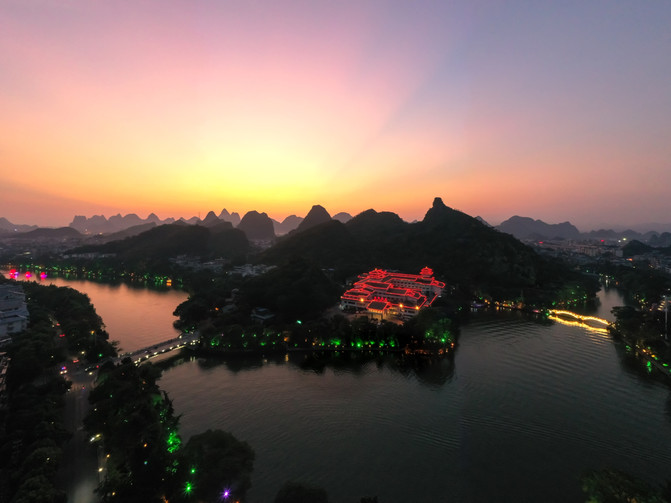Guilin tiene tres montañas y dos cuevas, dos ríos y cuatro lagos. Las tres montañas se refieren a la montaña Xiangxi, la montaña Dicai y la montaña Fobo, y las dos cuevas son Ludi Rock y Qixing Rock. Dos ríos y cuatro lagos se refieren al río Li, el río Taohua, el lago Gui, el lago杉, el lago Rong y el lago Mulong.