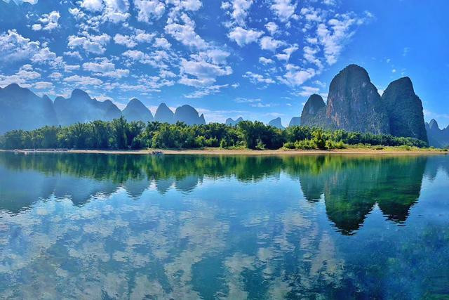 Jugar en Guilin, los amigos experimentados dirán: ¡No te pierdas Yangshuo!¿Cómo es eso? Después de todo, es 20 yuanes en la parte posterior del lugar de toma, ¡naturalmente lo que decir también tiene que perforar la tarjeta! Si los dos ríos y los cuatro lagos de Guilin son hermosos después de haber sido cuidadosamente decorados, el paisaje de Yangshuo es un disfrute puro y natural: no importa si es un día soleado o lluvioso, tiene su propio encanto, el cielo está claro, el agua del lago es clara y transparente, los picos se reflejan en la superficie del agua, como si estuviera bajo el agua formando otro mundo. Al amanecer o al atardecer, el cielo presenta un color altamente saturado sin retoques, un naranja brillante esparcido en el lago tranquilo, y todavía hay balsas de bambú y pescadores en la distancia. No es de extrañar que los poetas desde la antigüedad lleguen aquí para hacer grandes poemas, tal hermoso paisaje en el corazón es una purificación profunda.