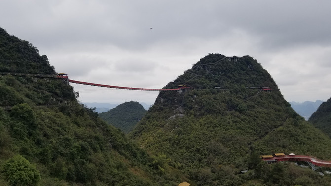 El puente es de 142,4 metros de largo, la cubierta es de 2 metros de ancho y la cubierta está a 58 metros del fondo del valle. Al estar en el bosque de Yangshuo Feng, el aire se sacude ligeramente para dar una experiencia maravillosa.