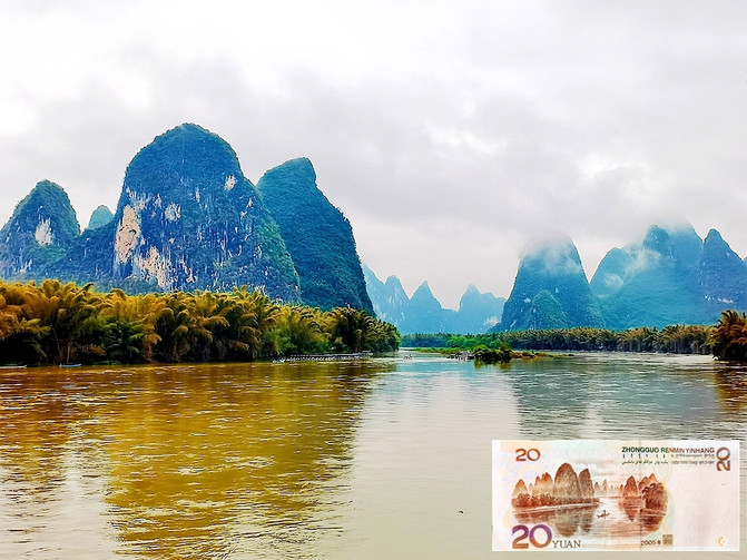 En 1993, el trabajo filmado por Xie Jin en Yuanbaoshan, la antigua ciudad de Xingping, Yangshuo, Guilin, Guangxi, se convirtió en un patrón de fondo de 20 yuanes. Para venir aquí, debe preparar un 20 yuan para compararlo, ¿se siente exactamente lo mismo?
