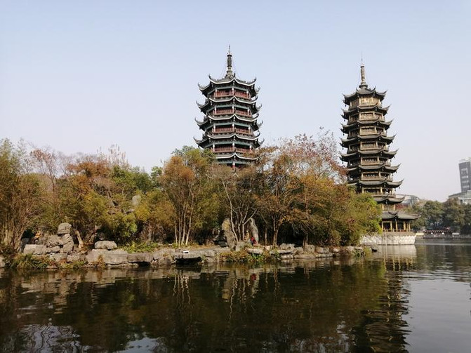 En diciembre de 2020, tuve la oportunidad de ir a Guilin para jugar durante una semana. Antes de regresar de Guilin en la mañana del 25, no pude evitar ir a los dos ríos y cuatro lagos para ver el hermoso paisaje diurno. Abandoné el autobús del equipo y tomé el autobús de Wanfu Square al lado del lago杉 para fotografiar el paisaje alrededor de la Torre del Sol y la Luna. Es realmente hermoso.