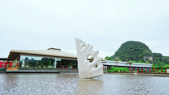 La escultura en el centro del césped del Guilin Clubmed Hotel es muy visible y también es uno de los símbolos del hotel.