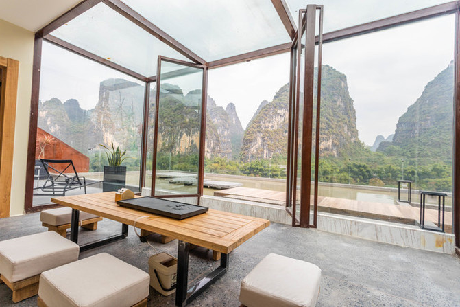Recostado en la cómoda cama queen de la habitación, tal vez debido a que la habitación está en el último piso, el techo también se abre para ver directamente a las estrellas de Yangshuo. El aire está limpio en Yangshuo, la luz de las estrellas es especialmente brillante, y el sueño se volverá especialmente dulce.