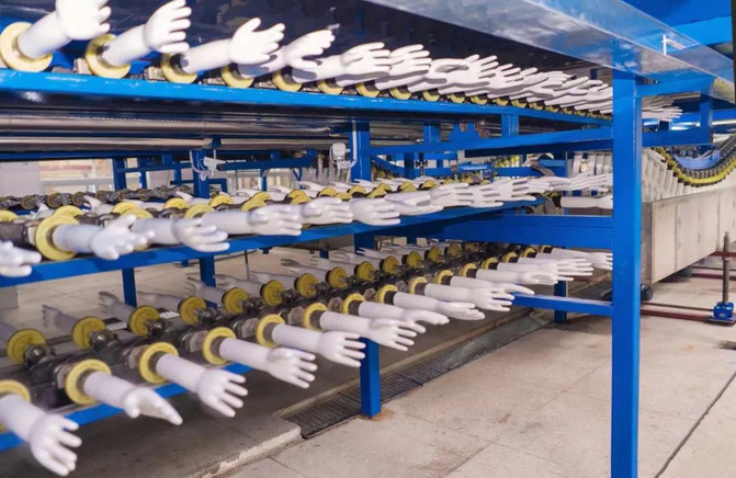Los guantes médicos son de hecho una industria altamente intensiva en tecnología, no solo deben considerarse desde la selección de materias primas, el control del proceso de producción, la detección de calidad, la eficiencia energética y otros aspectos, sino también llevar a cabo una gran cantidad de pruebas de investigación y desarrollo tecnológico. La investigación y el desarrollo deben subdividirse en las partes de cada producto del guante, la longitud, el ancho, el tamaño del borde, los datos de tracción de cada dedo... desde el laboratorio hasta la línea de producción, hay más elementos a considerar, tan pequeños como barril de inmersión, cepillo, molde, hasta el sistema de autocontrol, toda la estructura del horno, la estructura del aceite conductor de calor, la estructura del aire caliente, etc.